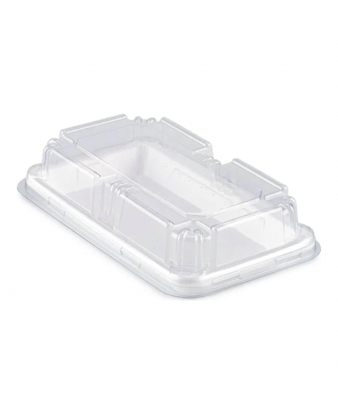 A bandeja EPS FF 06 CT com tampa da Fibraform é ideal para acondicionar diversos produtos, garantindo um excelente destaque no ponto de venda.