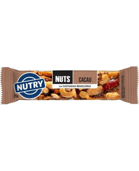 Amendoim, mistura de oleaginosas (castanha-de-caju, amêndoa e castanha-do-Brasil), cobertura sabor chocolate (açúcar, gordura vegetal fracionada, cacau, soro de leite, emulsificantes lecitina e poliglicerol polirricinoleato e aromatizantes), polidextrose, açúcar, flocos de cereais*, glicose de milho, cacau, óleo de girassol, sal, estabilizantes goma acácia e glicerol, antioxidantes lecitina e mistura concentrada de tocoferóis e aromatizante. *Arroz e milho.