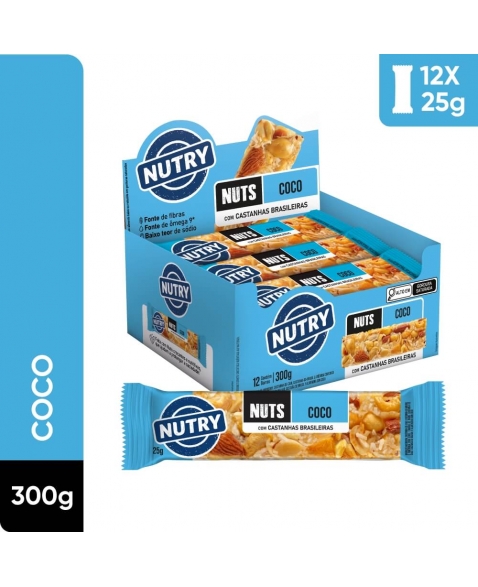 Amendoim, mistura de oleaginosas (castanha-de-caju, amêndoa e castanha-do-Brasil), coco, açúcar, glicose de milho, polidextrose, óleo de girassol, sal, estabilizantes goma acácia e glicerol, antioxidantes lecitina e mistura concentrada de tocoferóis e aromatizante.