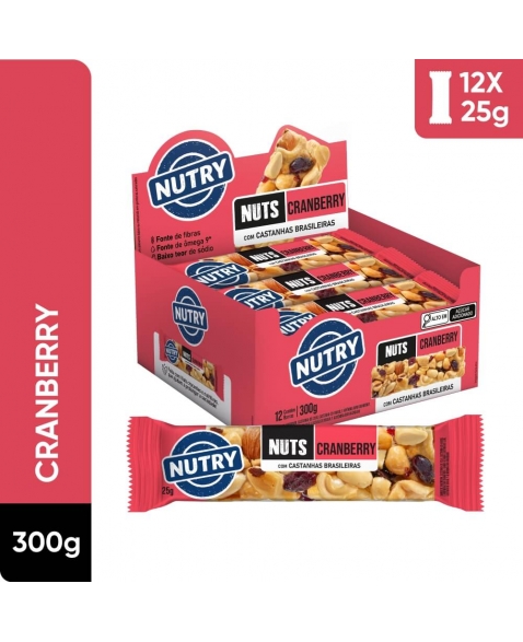 Amendoim, mistura de oleaginosas (castanha-de-caju, amêndoa e castanha-do-Brasil), açúcar, glicose de milho, cranberry, polidextrose, óleo de girassol, sal, estabilizantes goma acácia e glicerol, antioxidantes lecitina e mistura concentrada de tocoferóis e acidulante ácido cítrico.