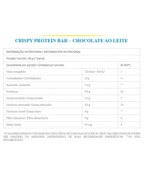 INGREDIENTES: PROTEÍNA DE SOJA (PROTEÍNA DE SOJA ISOLADA, CACAU E AMIDO DE TAPIOCA), COBERTURA SABOR CHOCOLATE, PROTEÍNA CONCENTRADA DO SORO DE LEITE, CACAU, EMULSIFICANTE MALTITOL INS965, UMECTANTE GLICERINA INS422, ANTIOXIDANTE MISTURA DE TOCOFERÓIS INS307b E AROMATIZANTE.