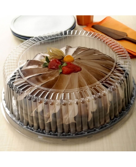 A embalagem TH-Galvanotek G-060 M é ideal para armazenar e transportar tortas e bolos confeitados de até 2,2kg. Seu design transparente com base branca permite uma apresentação atraente do conteúdo, destacando a qualidade e o cuidado na preparação. Além de tortas, pode ser utilizada para bolos e outras sobremesas, oferecendo versatilidade para padarias e confeitarias.