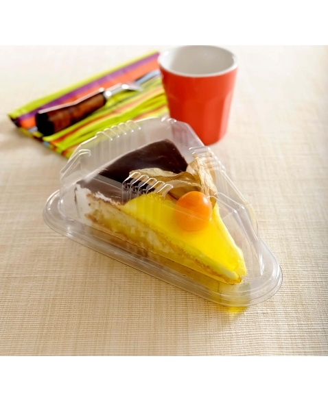 A embalagem TH-Galvanotek G-630 é ideal para armazenar e transportar fatias de torta, garantindo que cheguem aos clientes em perfeitas condições. Com um design transparente e uma tampa articulada, ela permite uma apresentação atraente do produto, mantendo a integridade e frescor dos alimentos. É uma excelente escolha para confeitarias, padarias e serviços de catering que desejam oferecer sobremesas de alta qualidade.