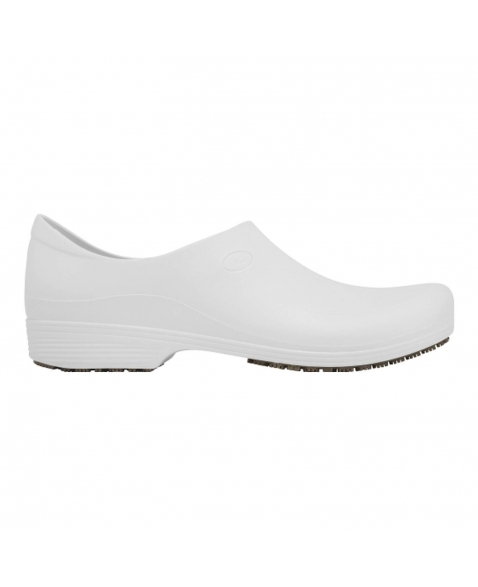 Sapato ocupacional masculino, produzido em material polimérico impermeável. Injeção tipo full-plastic com solado de borracha vulcanizada antiderrapante.