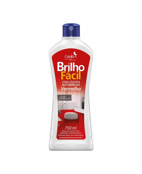 A Cera Líquida Brilho Fácil Vermelha proporciona um acabamento espelhado e impecável ao piso, formando uma película especial que reaviva as cores, oferece efeito antipó e protege contra riscos. Sua fórmula, reconhecida e aprovada pelos consumidores, é fácil de aplicar e garante um perfume prolongado. A versão vermelha pode ser aplicada em pisos de cores vermelhas.