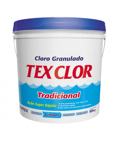 Modo de uso: Com o sistema de filtração ligado, aplique 4g do produto para cada 1.000 litros (1 m³) de água, preferencialmente à noite, distribuindo o cloro ao longo das laterais da piscina. Para piscinas de fibra ou vinil, dissolva previamente em um balde plástico com água da própria piscina. Na manhã seguinte, meça o teor de cloro livre, que deve estar entre 1 e 3 ppm. Em casos de água turva, odores fortes ou irritação nos olhos, recomenda-se uma supercloração com 14g por 1.000 litros.