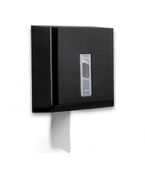 O Dispenser Preto para Papel Higiênico Rolão 300/500m - NOBRE é indicado para banheiros de alto fluxo em ambientes comerciais, industriais e institucionais. Compatível com rolos de até 500 metros, proporciona economia e reduz a frequência de reposições.