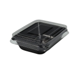 A bandeja forneável preta de 400ml da Galvanotek, modelo G-203, é ideal para o armazenamento, transporte e preparo de alimentos. Com sua base em CPET, ela é apta para uso em micro-ondas, freezer, air fryer e fornos a gás domésticos e industriais, permitindo o aquecimento rápido e seguro das refeições. Utilize-a para porções individuais de pratos como lasanhas, refeições congeladas e delivery, garantindo que cheguem em perfeitas condições aos seus clientes. A Galvanotek Embalagens é a primeira empresa no Brasil a desenvolver produtos utilizando a matéria-prima CPET, que permite congelamento de até -30ºC e aquecimento de até 205ºC.