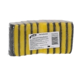 Ela não deve ser utilizada em materiais delicados, como inox, pois pode causar riscos. Para maior durabilidade, enxágue a esponja após o uso e mantenha-a em local seco.
