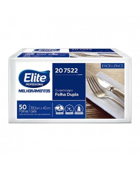 O Guardanapo Folha Dupla 39,5x40 - ELITE é a escolha ideal para quem busca sofisticação e qualidade em mesas bem preparadas. Produzido em papel folha dupla de alta resistência e maciez, oferece excelente absorção e um toque refinado, sendo perfeito para restaurantes, eventos e uso doméstico.