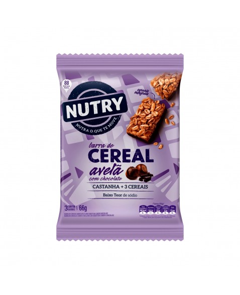 Barra De Cereais Nutry Avelã E Chocolate - Nutrimental - Caixeta Com 3 Unidades De 22G