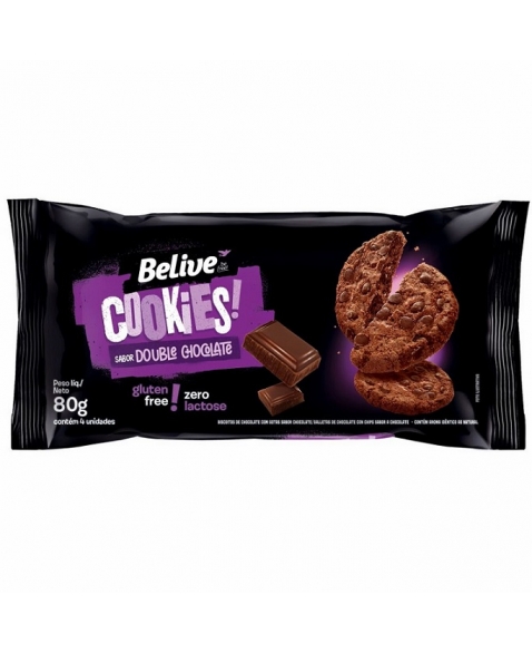 COOKIES BELIVE SABOR DOUBLE CHOCOLATE S/GLU & S/LEITE 10X80G
