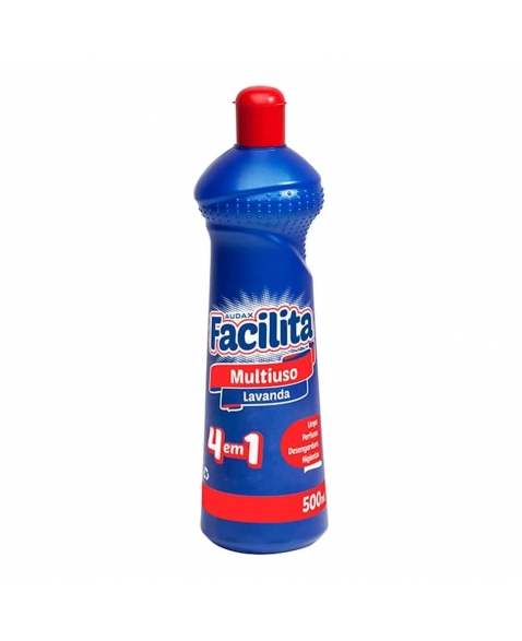 Facilita Multiuso é um limpador versátil que oferece uma solução 4 em 1 para a limpeza geral. Ele limpa, higieniza, desengordura e perfuma, sendo indicado tanto para uso doméstico quanto em locais com baixo fluxo de pessoas. Sua fórmula é adequada para remover facilmente sujeiras e resíduos, deixando uma agradável fragrância de lavanda. O produto é recomendado para superfícies laváveis, como cozinhas, geladeiras, fogões, pias, banheiros, vidros, paredes, azulejos, plásticos, acrílicos e eletrodomésticos.