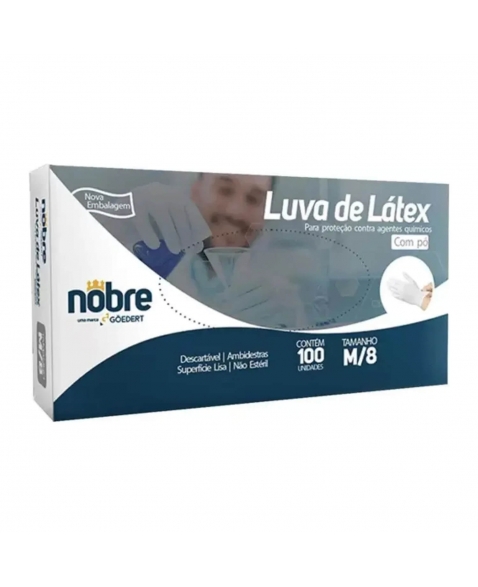 A Luva de Látex Média com Talco - NOBRE é indicada para proteção das mãos em atividades nas áreas de saúde, limpeza, estética e manipulação de alimentos. Fabricada em látex natural, oferece elasticidade, ajuste anatômico e conforto.