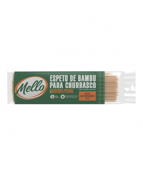 Com 25cm de comprimento, é perfeito para espetinhos de carne, frango, vegetais e frutas, oferecendo praticidade e segurança no manuseio. Disponível em embalagens com 50 unidades, o Palito de Bambu MELLO combina funcionalidade e sustentabilidade, sendo uma escolha confiável para quem valoriza qualidade e compromisso ambiental.