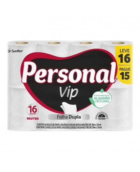 HigienePapel HigiênicoPapel Higiênico Personal VIP Neutro Folha Dupla com 16 Rolos