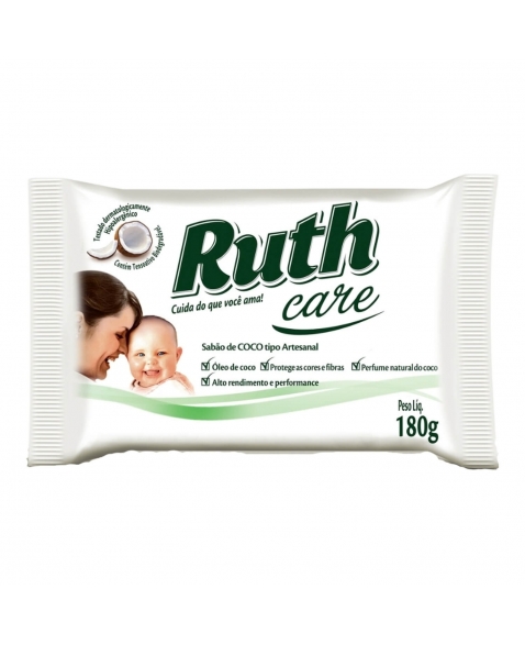 O Sabão de Coco Ruth em barra de 180g é conhecido por sua alta eficiência e versatilidade. Feito com óleo de coco, ele é ideal para lavar roupas finas, delicadas, íntimas e de bebês, pois limpa sem danificar as cores e fibras dos tecidos. Além disso, pode ser usado para lavar louças e até mesmo como sabonete para o corpo e cabelo em alguns casos.