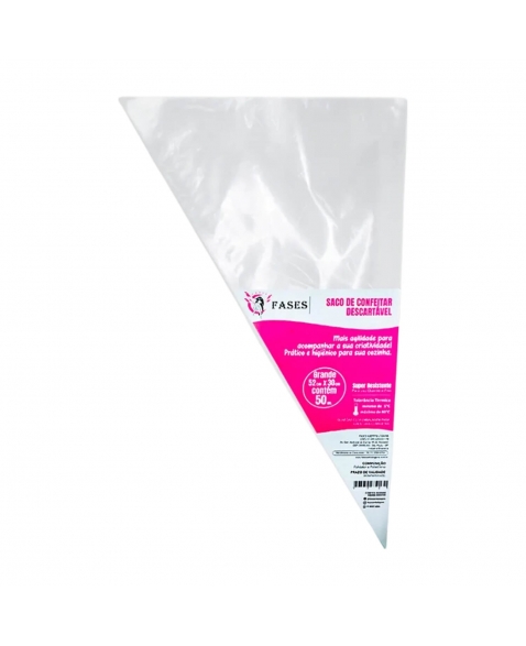 O Saco para Confeitar Descartável Grande 30x52cm é um utensílio essencial para confeiteiros, permitindo decorar e rechear bolos, cupcakes e outros doces com precisão e higiene. Fabricado em plástico resistente, suporta preparações quentes e frias, garantindo versatilidade no uso. Para utilizá-lo, dobre a borda superior do saco para fora, formando uma aba de aproximadamente 4 cm. Com o auxílio de uma espátula, coloque a cobertura ou recheio desejado dentro do saco, evitando encher completamente para facilitar o manuseio. Corte a ponta do saco no tamanho adequado ou insira um bico de confeitar conforme a necessidade. Segure o saco firmemente pela parte superior e aplique pressão constante para liberar o conteúdo de maneira uniforme. Este saco de confeitar é amplamente utilizado em confeitarias e cozinhas profissionais, proporcionando praticidade e eficiência na decoração de doces e sobremesas. É importante lembrar que este produto é descartável; não reutilize para evitar contaminações e garantir a higiene. Além disso, evite encher o saco em excesso, pois isso pode dificultar o manuseio e comprometer a precisão na decoração. Certifique-se de cortar a ponta do saco no tamanho adequado ao bico de confeitar escolhido, garantindo a fixação correta e evitando vazamentos.