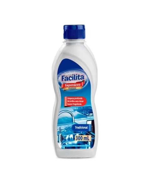 Aplicações: O Facilita Saponáceo é indicado para a limpeza de superfícies como aço inox, esmaltados, porcelanas, azulejos e louças. Ele é recomendado especialmente para cozinhas e banheiros, onde a remoção de sujeira mais pesada e a necessidade de brilho sem riscos são essenciais. Pode ser utilizado tanto em ambientes residenciais quanto comerciais.