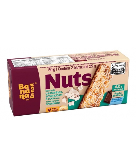 CATEGORIA ALIMENTARZERO GLÚTENBarra de Nuts Coco e Chocolate - Banana Brasil - Caixa 2x25g