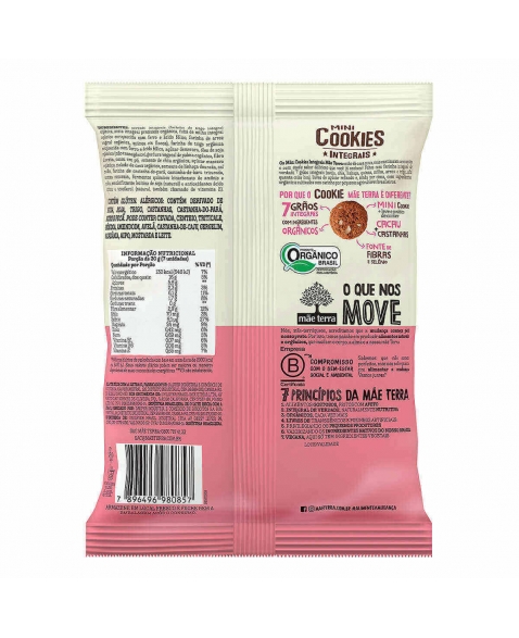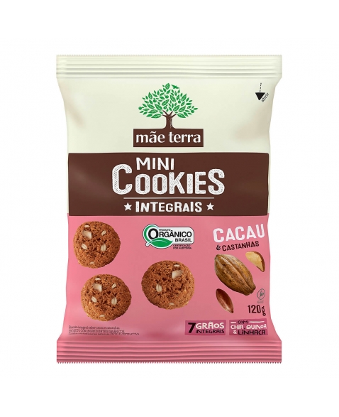 CATEGORIA ALIMENTARZERO LACTOSEMini Cookie Cacau Castanhas Integral Orgânico - MÃE TERRA - 120g