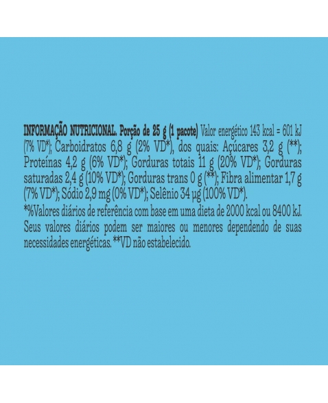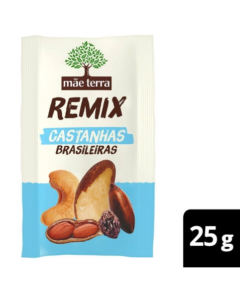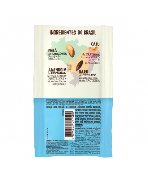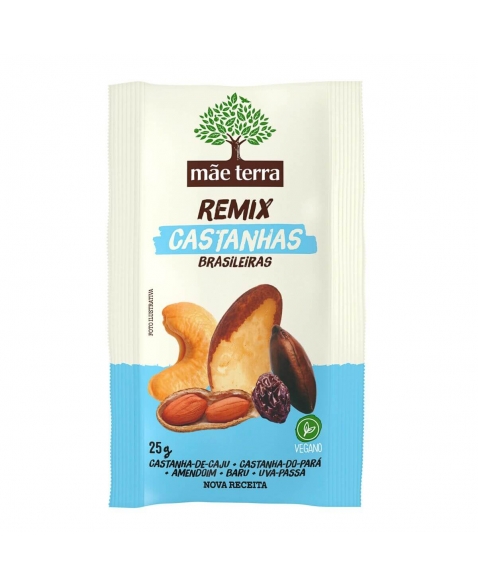Mix saudável de bolso pra você levar para qualquer lugar. Com castanhas do nosso Brasil: da Amazônia, a castanha-do-pará; do Cerrado, o baru; da Caatinga, a castanha-de-caju; do Pantanal, o amendoim, em uma combinação saborosa com o docinho natural das uvas passas. E, o melhor, não tem adição nem de sal, é purinho, purinho! O Remix Castanhas reúne tudo de melhor num lanchinho só: valoriza os ingredientes da biodiversidade brasileira, é puro e 100% natural, nutritivo e muito prático. Tem como ser mais perfeito? As castanhas são naturalmente ricas em gorduras boas, fibras, minerais, vitaminas e antioxidantes.
